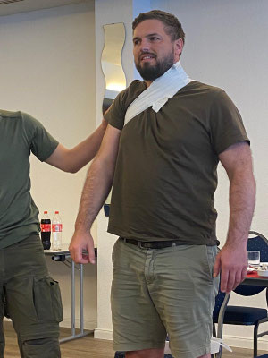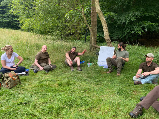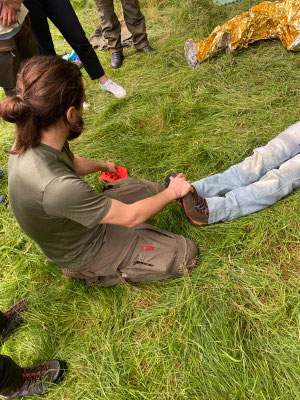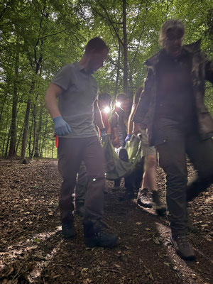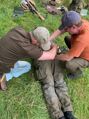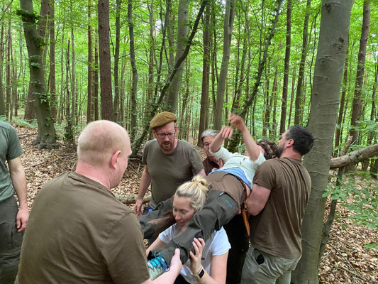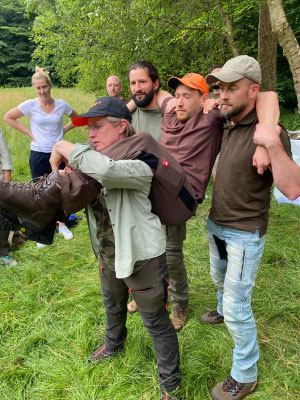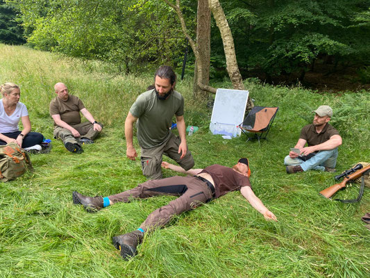 Am 28. und 29. Juli 2025 fand wieder unser spezieller Outdoor Erste-Hilfe-Kurs statt. Philipp von der Saal hat erneut anschaulich erklärt und gezeigt, wie man sich im Notfall auf der Jagd oder bei anderen Outdoor-Aktivitäten verhalten kann. Und wie schon im letzten Jahr waren unsere Teilnehmer restlos begeistert vom Ablauf des Kurses. Der gut erklärte theoretische Teil im Landhaus Jägerhof in Harburg, das Mittagessen und Frühstück dort und die anschließenden praktischen Übungen im Gelände empfanden alle als rundum gelungen. Alle Teilnehmer erhielten eine Bescheinigung für Ersthelfer im Betrieb. Nachfolgend einige Impressionen zum Kurs.